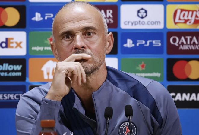 雷速体育10月1日讯 欧冠联赛阶段第二轮,巴黎圣日耳曼对阵巴塞罗那的赛前,大巴黎主帅恩里克出席了新闻发布会。