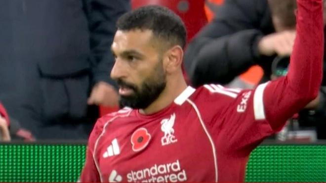 此役主场对阵维拉,萨拉赫在上半场补时阶段抓住对方门将达米安-马丁内斯的失误取得进球。