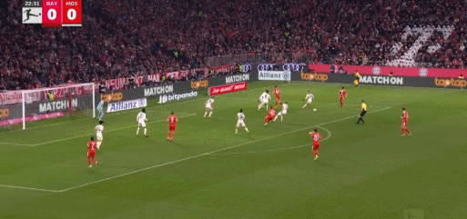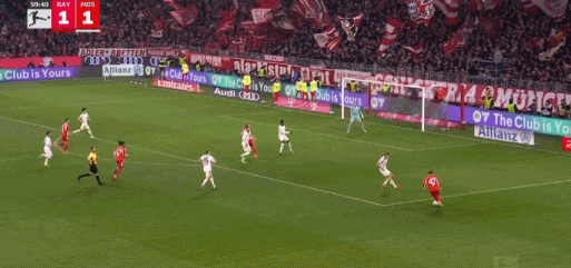 第29分钟,格纳布里送助攻,卡尔破门,拜仁1-0美因茨
